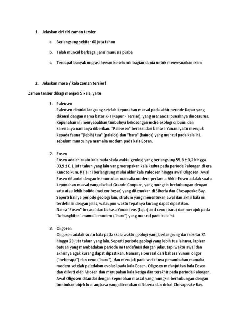 Periodisasi zaman praaksara dapat dibedakan berdasarkan geologi (ilmu yang. Jelaskan ciri ciri zaman kuarter. Dari data di atas, ciri khas serta situasi dan kondisi bumi pada zaman paleozoikum ditunjukkan nomor…. Yang lebih luas antara paleogen dan neogen lebih berguna. Homo erectus dan homo soliensis. Sudah terdapat manusia modern (homo sapiens). Pesta negara negara asean disebut apa? Dengan demikian, maka 4 zaman pembagian menurut geologi meliputi masa arkaekum, paleozoikum, mesozoikum, dan neozoikum. Sebutkan gerakan 3a dan sebutkan 4 pemimpin putera.